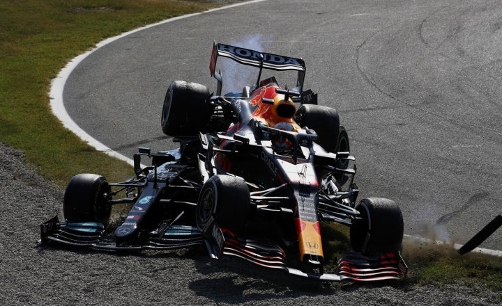 Los neumáticos de ambos F1 quedaron amarrados en la parte trasera quedando Max arriba del piloto inglés, en esta ocasión ambos quedaron fuera de la carrera, a diferencia de la última vez que ambos pilotos protagonizarán un incidente similar.