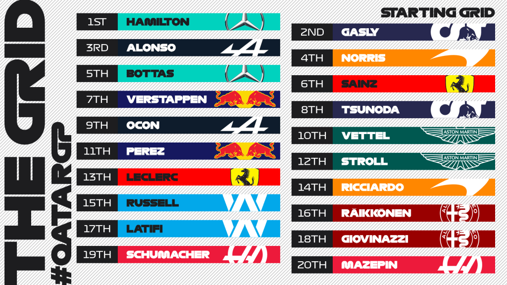 https://platform.twitter.com/widgets.jsUPDATED STARTING GRID, QATAR 🚦#QatarGP 🇶🇦 #F1 pic.twitter.com/txEGX57GvF