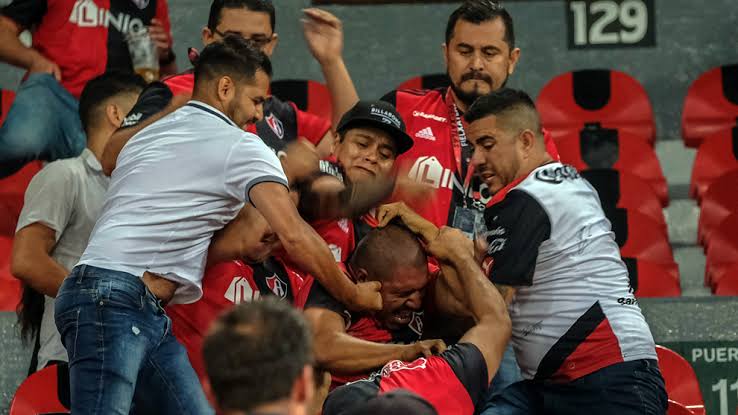 Elementos de seguridad sacaron a varios aficionados del Estadio Jalisco durante el Clásico Tapatío. De acuerdo a la policía de Guadalajara, detuvieron a seis personas por participar en riñas y retiraron a nueve por incitar a la violencia.