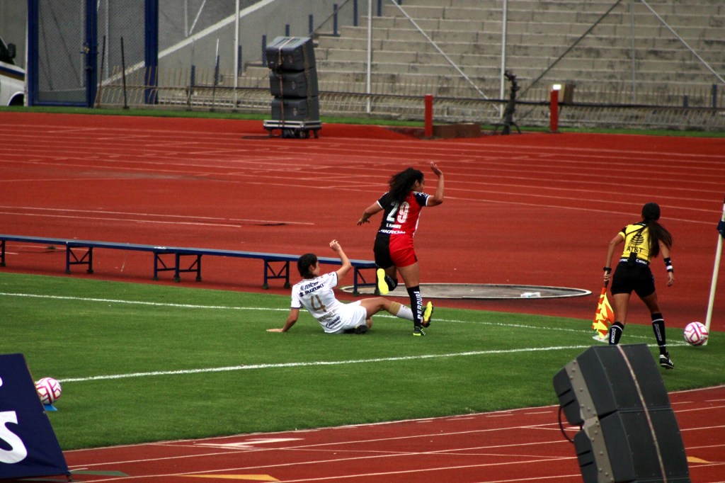 El partido comenzó con un ritmo juego bastante lento, donde los equipos no tenían clara la amera de llegar al marco rival y ambas escuadras estaban compitiendo en lo físico, hasta que en el minuto 13 de juego en una jugada que comenzó Deneva Cagigas, con un pase largo hacia Paola Chavero, que hacia triangulación cerca del área rojinegra, donde con un tiro de zurda cruzado, Gabriela Juárez ponía el primero para las universitarias, en ese lapso hasta el final del primer tiempo el ataque de las universitarias era demasiado y en el minuto 43, un centro de Paola Chavero encontraba a la goleadora Aerial Chavarin, cruzaba a la Gabriela Paz con un gran cabezazo y marcaba el segundo de la tarde.